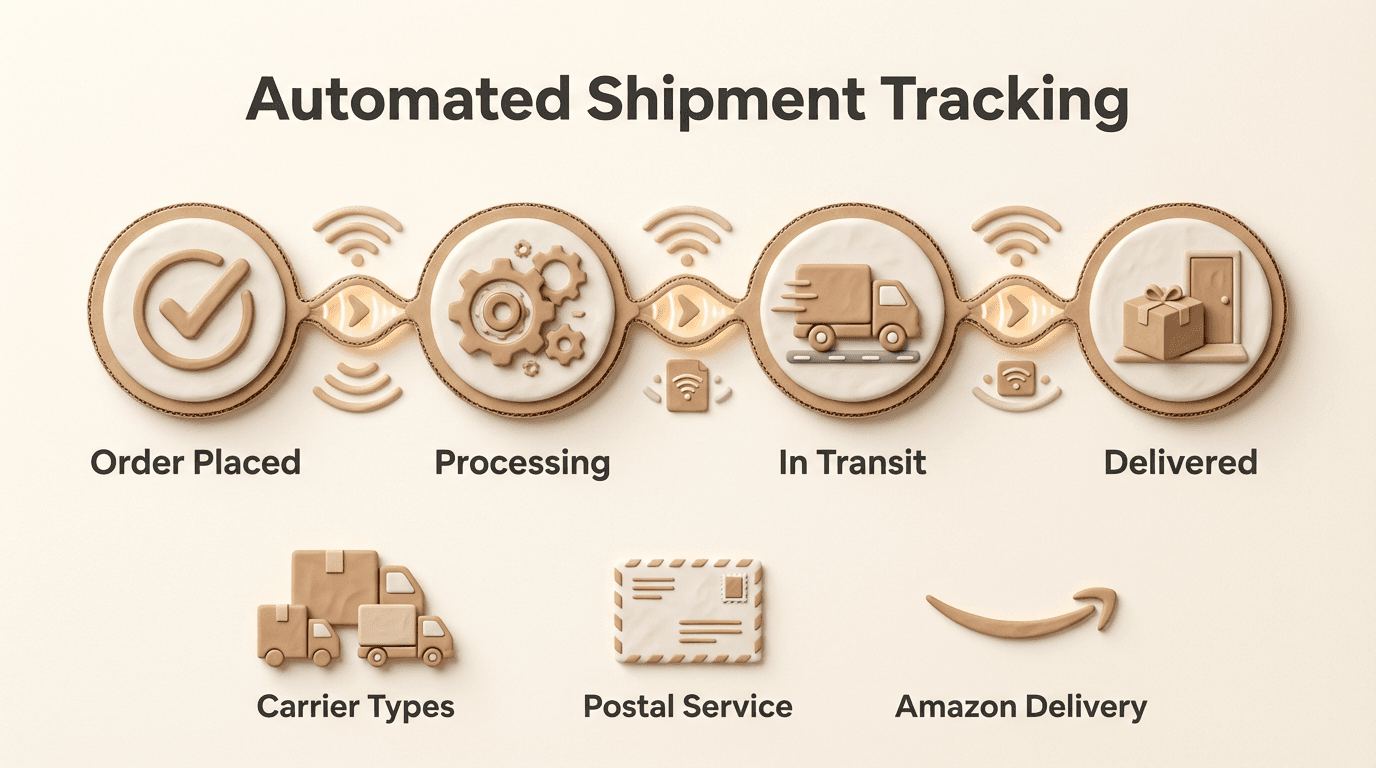 Once an order ships, Zinc automatically pulls the tracking number from Amazon and adds it to the order object. That includes native Amazon Logistics numbers (starting with TBA), plus UPS, FedEx, and USPS.