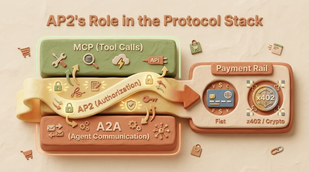 AP2 is the authorization layer of agentic commerce. It doesn't move money. It proves that the user said "yes" to this specific action, in a way every party in the transaction can verify cryptographically.