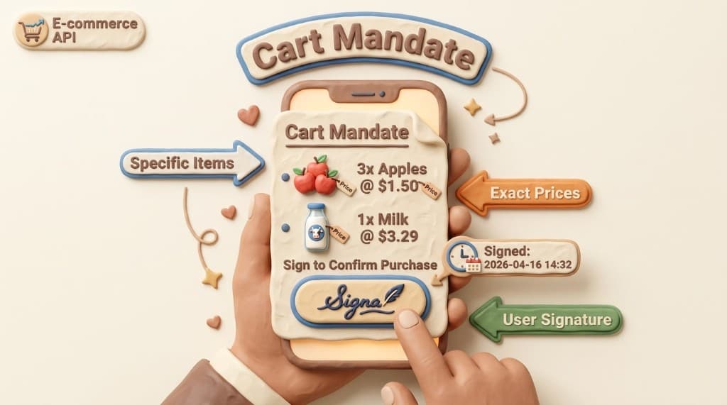 The user signs a Cart Mandate at the moment of purchase to approve a specific transaction.
