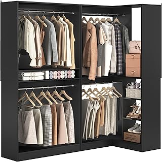 Unikito Corner Closet System, 72" L-Shaped Closet Organizer with 4 Hanging Rods, Heavy Duty Wood Garment Rack with Sh...