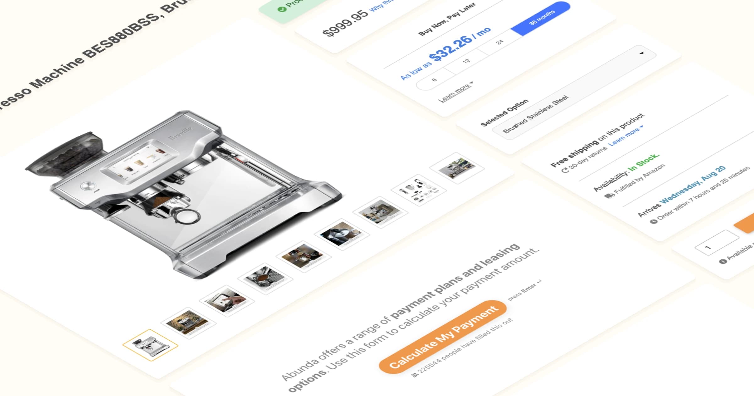 - Built-in financing integration: Because Zinc delivers pricing in real time, Abunda can calculate payment plans instantly at search and product page level, creating a seamless buy-now-pay-later experience from the very first click.