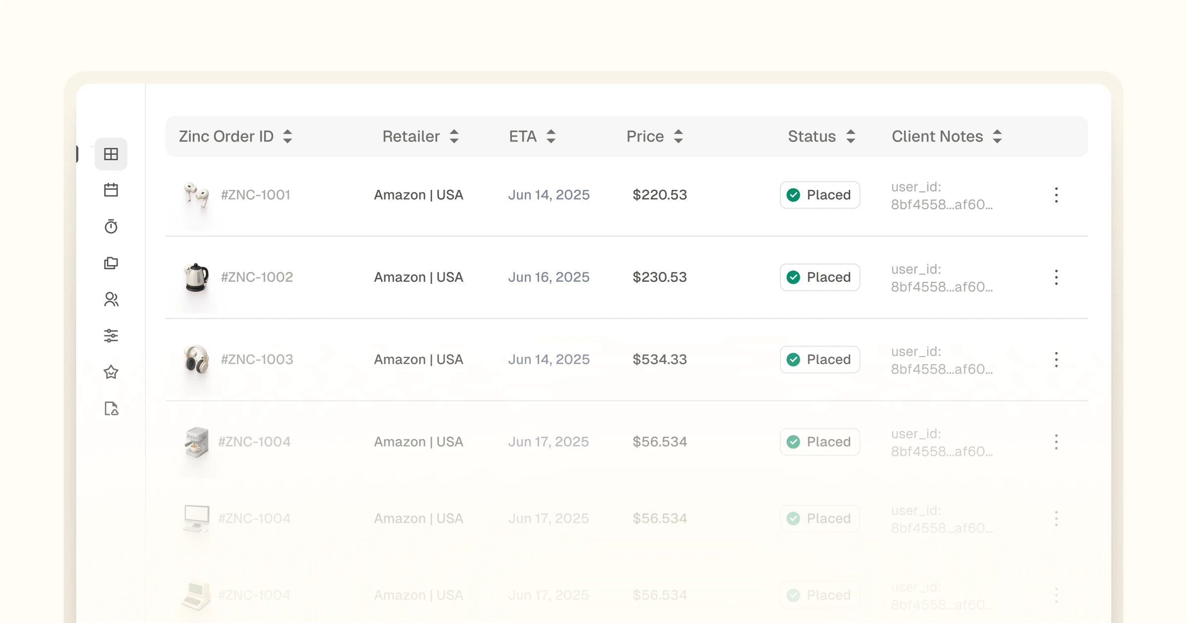 Zinc’s Ordering API places and fulfills high-value orders automatically, so Abunda can handle tens of thousands of purchases without scaling their ops team.